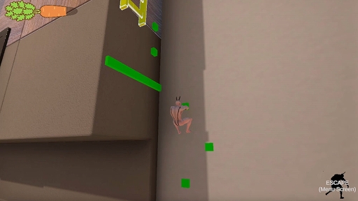 彼女たちは、あなたを見つけるときっと銃で攻撃してくるでしょう。小さなあなたは机の隙間やベッドの下、時にはとても汚い場所に身を潜めて全てのにんじんを探し出します。
