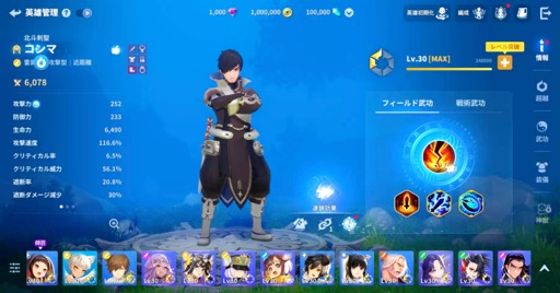 フィールド戦闘でプレイヤーが操作するキャラクターは,リーダーに設定した英雄1名で,デッキに入れた残りの4名はいわゆるスキル扱いとなる。したがってデッキは,スキル(武功)同士のシナジーや,敵の攻撃・防御手段や弱点などを踏まえたうえで適宜組み替えていったほうが有利になる。