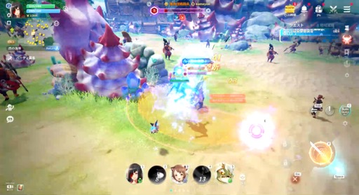 ![]() フィールドボスとのバトルやコンテンツ「ネームド」では,プレイヤー同士の協力プレイが可能となる |