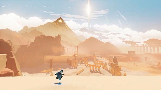 Sword of the Seaは空を飛ぶ剣に乗って疾走する,アクションアドベンチャーゲームだ。スケートボードやスノーボードのゲームにインスパイアされたという作品で,あらゆる地形をホバーソード(?)で疾走する爽快感を味わえる。