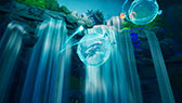 バトルでは、水の力を放って敵を吹き飛ばすことや、水の力場を発生させてダメージを与える水玉を敵にくっつける攻撃ができる。