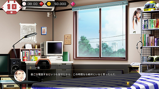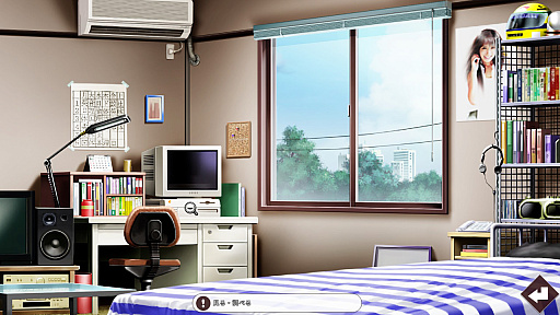 ![]() 自室にあるPCのデザインや携帯電話がなさそうな雰囲気から,時代設定は原作と変わらない様子 |
