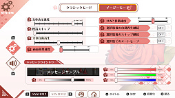 ![]() 環境設定では,文字表示速度や既読スキップ,MAP移動速度,セーブ関連なども細かく設定できる |