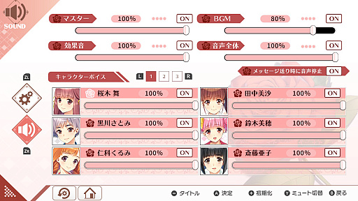 なおボイスは,環境設定にある「キャラクターボイス」の項目でオン/オフを切り替えられる。キャラクターごとに設定できるほか,個別に音量も変更できるので,プレイスタイルや環境に合わせて設定しておくといい。