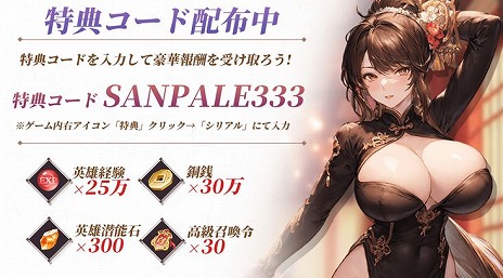 特典コード:SANPALE333