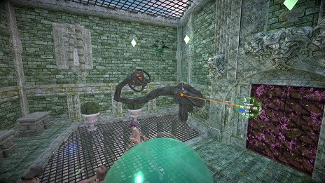 ゴーレムも物理演算で動作している為、腕パーツを天井に吊り上げたり、足パーツを抑え込んで動きを鈍くするなど、プレイヤー次第で様々な戦略を組み立てられます。