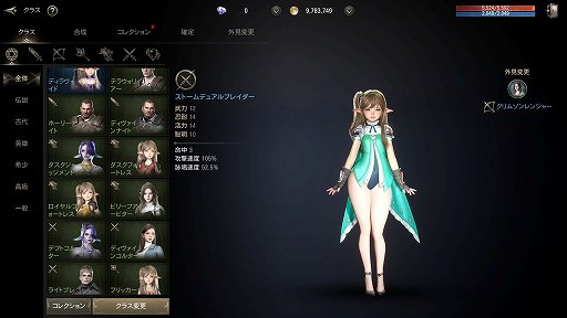 クラスにはランク,武器種,追加ステータスのほかに,外見の要素もある。この外見については,同じ武器種のクラスに限り外見変更の機能がある。例えば,希少ランクの弓のクラスに,一般ランクの弓のクラスの外見だけを適用して見た目を変更する,といったことができるというわけだ。