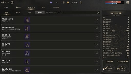 クラスやペットには,コレクション要素も備わっており,新しいものを入手すると追加ステータスを獲得できる。合成に使用できるのは重複したもののみなので,このコレクションによるステータス上昇が消えることはない。同じクラスやペットを複数所持していても意味がないので,積極的に合成して,コレクションを増やしていくのが重要だ。