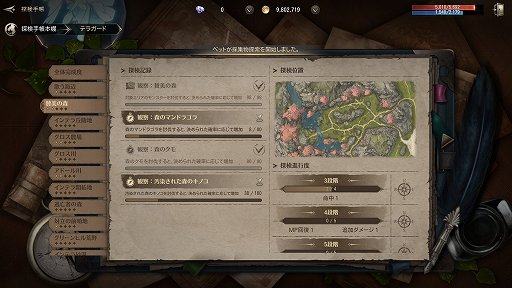 ほかにも「探検手帳」というコレクション要素がある。指定されたモンスターを倒して進行度を上げると,追加のステータスが獲得できるというもので,時間はかかるものの,確実に強くなれる要素の1つだろう。