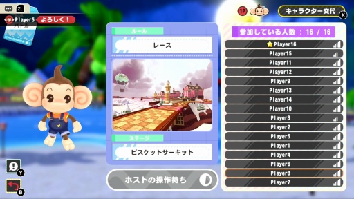 最大16人が参加できるオンラインモード。ステージやルールはホストのプレイヤーが選択する