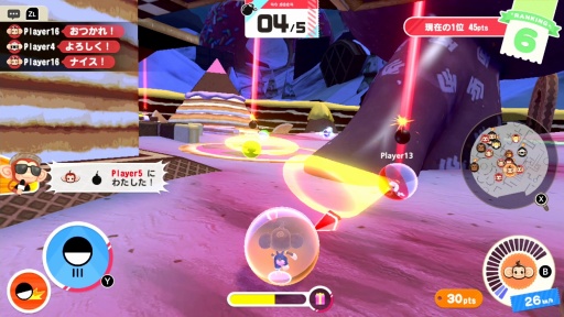 なかでも面白かったのはボムパニックだ。爆弾を持っているときは常に誰かを探して追いかけ,持っていないときはとにかく逃げ回る。まったく違う立ち回りが目まぐるしく入れ替わる展開が楽しく,終了寸前に逆転劇が発生するところも痛快だった。