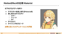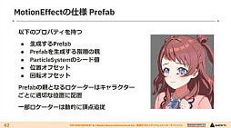 また,MotionEffectは“ぐるぐる目”などの特殊な表現を用いるために作成されたもので,モーションアセット側でPrefabの生成と,Materialに設定されたテクスチャを差し替える仕組みとなっている。