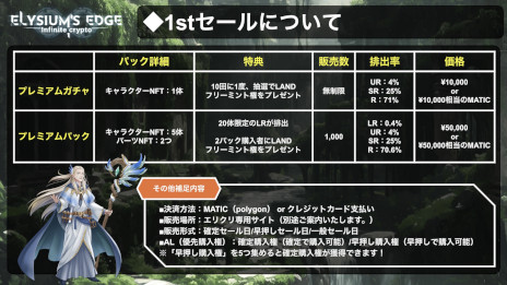 放置系ブロックチェーンゲーム『Elysium's Edge』(通称:エリクリ)の1stセールについての概要を本日発表いたしました。
