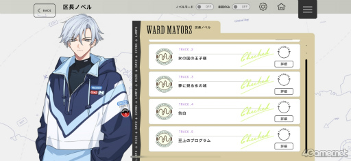 2025年4月25日より,順次フルボイス化も開始されており,より臨場感のある物語を楽しむことが可能です。2025年5月現在では,西園 練牙神名 雪風衣川 季肋斜木 七基の4人の区長ノベルがフルボイスに対応しています。