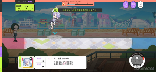 バトル序盤には,低コストで配置できる「ガイド」などのカードから使うのがおすすめです。観光客の数が増えてきたら,「パフォーマー」「オモテナシスト」といった,複数対応型のジョブを組み込むことで,効率的に満足度を上げられます。