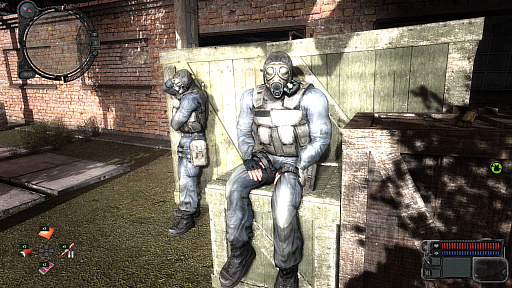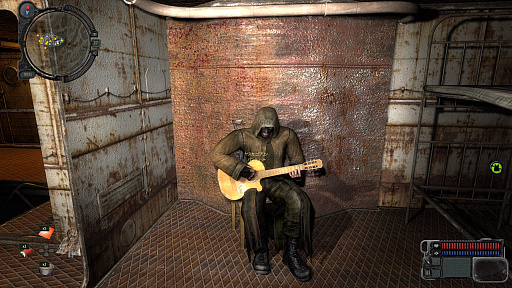 昨今,「ポストアポカリプスもの」はゲームジャンルを問わず,多く制作されている。だが,とにかく「S.T.A.L.K.E.R.」はハード極まりない。そこにいるのは,むさ苦しい男どもとミュータントであり,酒におぼれ,灰皿には吸い殻が山盛りで,泥臭く,人間臭く,放射能で汚染される極限の環境の中で,照準通りになんて飛ばない銃を撃って戦うのだ。そして,アイテムを使い果たし,ボロボロになりながらも拠点に帰ってきたとき,NPCがギターを弾いていたりする。どこまでもリアルで,どこまでも尖りまくっているこの世界は,プレイヤーを歓迎せず,ただただ,“そこにあるもの”として扱う。