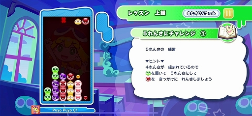 本作は,ぷよを消して「おじゃまぷよ」を相手に送る「ぷよぷよ通」や,次々に出題される問題に答えて,ノルマを先にクリアした方が勝ちになる「なぞぷよ」など,これまでのシリーズに登場したさまざまなルールで遊べるほか,Game Centerを使用すれば最大4人のオンライン対戦もサポートされている。