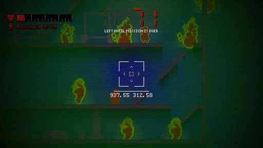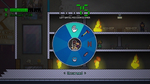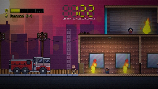 Heat Division: Rescue Teamは,火災によって炎に包まれる建物の中に残された人を救出していく2Dプラットフォームアクションで,いかに早く救出できるかを競う,いわゆるスピードランを遊びの軸としている。人を効率よく救出していくだけでなく,携帯式のはしごや水の入ったバケツなどのアイテムを使ったり,斧で壁を破壊して近道を作ったりして,時間短縮をしていくことも重要だ。