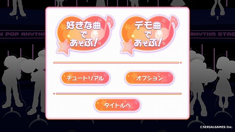 本作では、『好きな曲であそぶ!』モードと『デモ曲で遊ぶ!』モードが搭載されています。