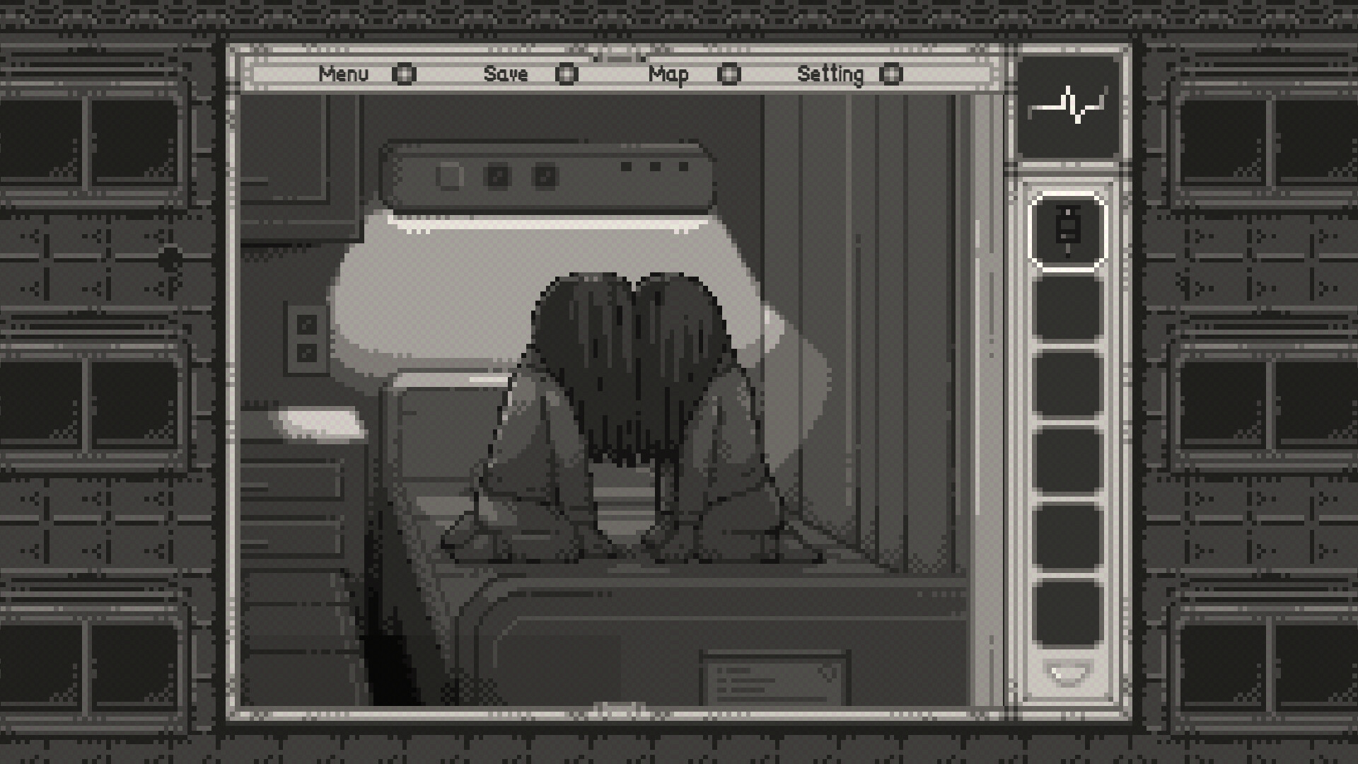 • 画像ギャラリー No.001 | 病院を舞台にした白黒ドットのホラーADV「Himantolo」,Steamで配信開始。消えた友人を探して,禍々しい怪物たちの潜む病院を彷徨う