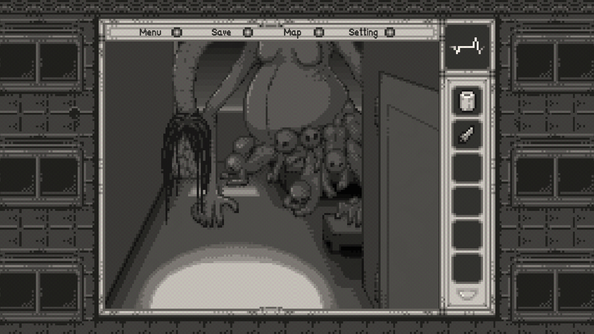 • 画像ギャラリー No.008 | 病院を舞台にした白黒ドットのホラーADV「Himantolo」,Steamで配信開始。消えた友人を探して,禍々しい怪物たちの潜む病院を彷徨う