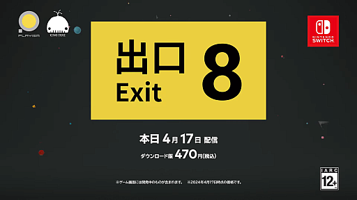 インディーゲームパブリッシングブランドの“PLAYISM”(https://playism.com/)(運営:株式会社アクティブゲーミングメディア)は、KOTAKE CREATE が開発を手掛けるウォーキングシミュレーター『8番出口』の Nintendo Switch 版を 2024 年4 月 17 日(水)より配信開始いたしました。
