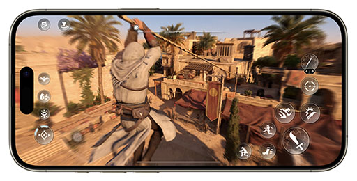アサシン クリード ミラージュは,若き泥棒のバシムが謎の組織「隠れし者」に加入し,マスターアサシンへ成長していく様が描かれるタイトルだ。今回リリースされたiOS版は,iPhone 15 Pro/Pro MaxやiPad Air,M1チップ以降のiPad Proがサポートされており,タッチはもちろん,ゲームパッドでのプレイが可能とのこと。