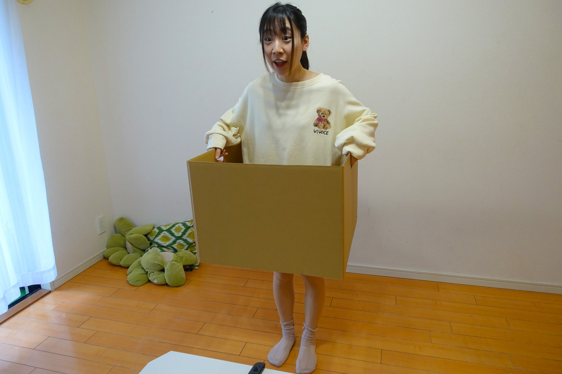 段ボール箱をコントローラとして使う体感型アクション「箱だけのブルース」本日配信。野球拳で負けて服をなくした男になりきり帰宅を目指す