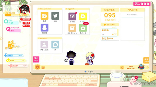 グッズの収集に必要な資金は,アルバイトをしたり,ファンからの依頼をこなしたり,同人誌を頒布したりすることで手に入る。お財布と相談しながら,たくさんのグッズを集めていこう。