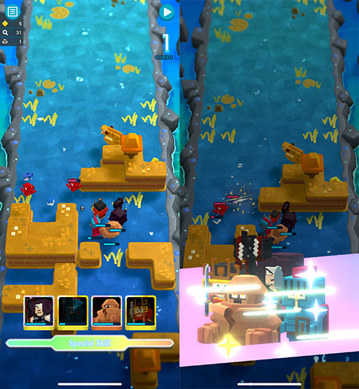特技を一定回数使い画面下部のゲージが溜まると「スペシャルスキル」を使用可能となり,発動することで敵に大ダメージを与えられる。また,オート戦闘の機能も用意されているので,そちらを使えば放置していてもステージを進めることは可能だ。