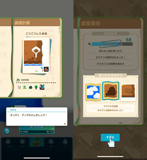 エリアの好きな場所を“ディグる”ことで,お宝やその手がかりを得られる