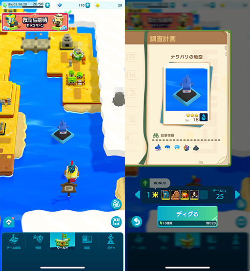 メインストーリー以外の探索部分についてだが,エリアの任意の場所をタップすることで,そのエリアを探索する……ゲーム内の通称で言うと“ディグる”ことができる。