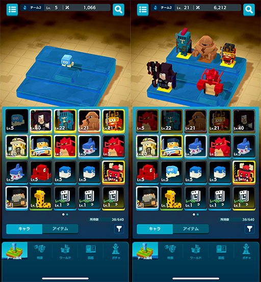 また,チームの色(属性)はリーダーによって決まるのだが,攻略するダンジョンとリーダーの色を合わせることでボーナスを得られるので,そちらもチーム編成の際には意識したほうが良さそうだ。キャラを配置できないスペースには,各種アイテムを配置していくことでHPや素早さなどの各種パラメータにバフをかけられる。