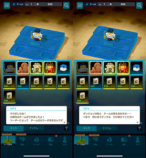本作でステージを攻略するチーム編成についてだが,3×3のマスにそれぞれキャラやアイテムを合計9つまで配置できるというものだった。まずキャラの中から1人リーダーを選ぶのだが,ここで重要なのは選ぶリーダーによって配置できるキャラの枠が変化するということだ。