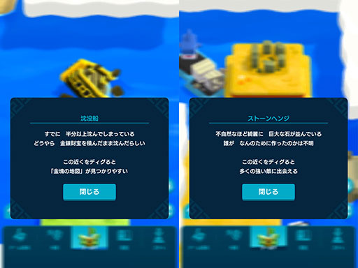 大まかにゲームの内容を紹介したが,全体的にカジュアルな作りになっているが,それでいて探索の自由度が高いのが本作の特徴だ。マップ上で動いているモンスターをタップすると突然クエストが登場したり,雲を晴らしていくと沈没船やストーンヘンジなどの特別な施設が現れたりと,新しい発見をカンタン操作で気軽に楽しめる。