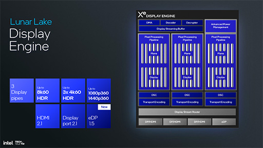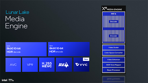 Lunar LakeのCompute tileには,メディアエンジンとディスプレイエンジンにも,それぞれ見どころがある。メディアエンジンでは,次世代のメディアコーデックである「H.266/VVC」に対応したデコーダを追加した。