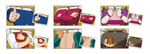 成歩堂,御剣,王泥喜たちが“でかすぎる肩幅”で登場。「カプくじオンライン」sattou氏と「逆転裁判」シリーズのコラボ商品を発売
