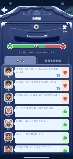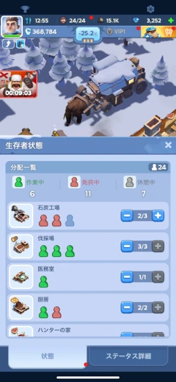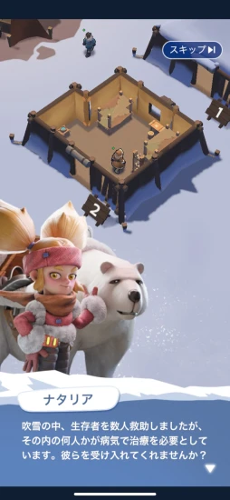 こうしたシステムはスマホで遊ぶスタイルと相性がよく,ちょちょいと操作したらあとは画面を見る必要もない。空いた時間に10分程度画面を触るだけで,氷と雪の世界を生き抜くサバイバル感が味わえる。