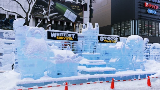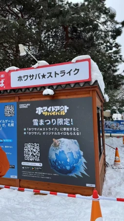 今回の雪まつり会場は,大雪像やスケートリンクが集まる「大通会場」と,コミュニティドームを中心とした「つどーむ会場」,南4条通から南7条通までの「すすきの会場」で構成されていて,そのいずれにも「ホワイトアウト・サバイバル」関連のコンテンツが用意されている。