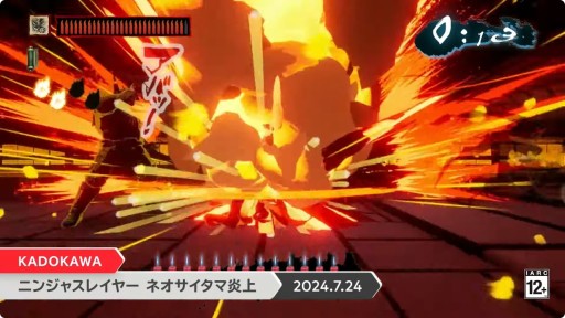 タイトル名 ニンジャスレイヤー ネオサイタマ炎上 ジャンル 横スクロールアクション 発売元 KADOKAWA(KADOKAWA Game Linkage)/ABCアニメーション 開発 Skeleton Crew Studio 発売時期 2024年7月24日(水) 対応予定言語 日本語、英語、ドイツ語、イタリア語、フランス語、ポルトガル語、スペイン語、韓国語、中国語(簡体字、繁体字) プラットフォーム Nintendo Switch、Steam プレイ人数 1人 販売価格 2,750円 販売形態 ダウンロード