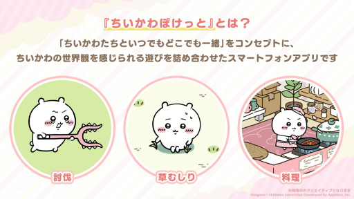株式会社アプリボット(本社:東京都渋谷区、代表取締役社長:浮田光樹)が企画・制作・開発・運営を行う、スマホアプリ『ちいかわぽけっと』(以下、『ちいぽけ』)の配信決定および事前登録の受付を開始したことをお知らせいたします。