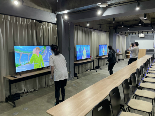 50名の参加者のほとんどは,Fit Boxingシリーズの熱心なプレイヤーだ。参加者は会場に用意された更衣室で運動しやすい服装に着替え,準備万端。開場からイベントが開始するまでのあいだ,4台並んだ試遊スペースで,いち早く追加キャラの「ヒロ」をインストラクターとして選び,プレイしていた。