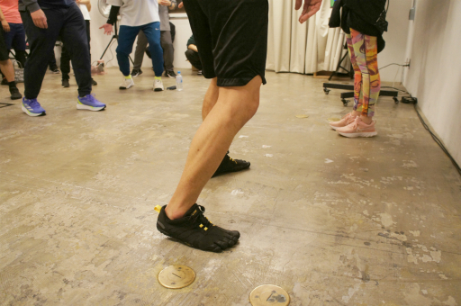 ゲームと同じBGMに合わせ,リズムにのってレッスンは進む。足の運び方やパンチの打ち方まで,実際に目の前の武藤さんからレクチャーを受けるというのは,非常にぜいたくな体験だ。