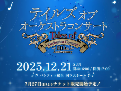 「テイルズ オブ オーケストラコンサート 30th Anniversary」12月21日にパシフィコ横浜 国立大ホールで開催