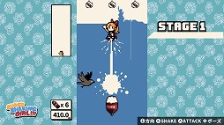 『SUPER SHAKING GIRL!!!』は、コーラを振って振って飛びまくる爽快アクションゲーム。コーラのシュワシュワパワーで空に飛び、空中で更にコーラを振って飛んで振って飛んで、どこまでも上を目指しましょう。