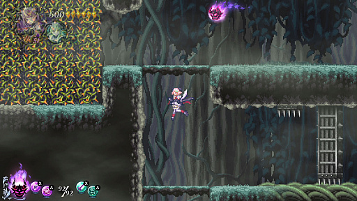 舞台はひとつの城から魔界全土へと拡張、ステージクリア型から探索型へと待望の進化を遂げた本作では、プレイヤーは性能の異なる二人のキャラクター「キリカ」「マーシャ」を使い分けながら、魔界を探索し武器を強化し、各地を統べるボス魔王たちとの戦いを繰り広げます。