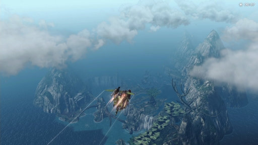 従来のドールの飛行はヘリコプターのような感覚で,スピードはさほど出ない。長距離の移動にはファストトラベルを使い,目的地へのファイナルアプローチをドールで行うという要領だった。しかしフレスベルグの登場により,長距離移動時に飛行を選択し,空からの絶景を眺めるという新たな楽しみが加わった。