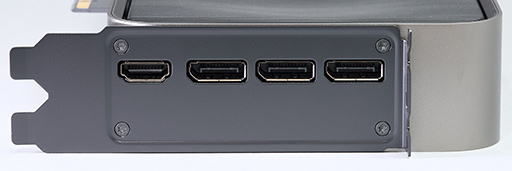 ブラケットには,映像出力インタフェースとして,DisplayPortが3系統,HDMIが1系統並んでいる。ブラケットにまったく開口部が用意されていない点も,RTX 5090と同じだ。