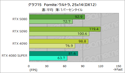 テスト内容は,4Gamerのベンチマークレギュレーション30に準拠。ただし,「Fortnite」は,RTX 5090のテストでグラフィックスAPIにDirectX 11を使用するとゲームが強制終了したため,今回はDirectX 12で統一している。