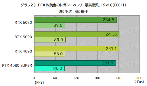 そんなFFXIV黄金のレガシー ベンチにおける平均フレームレートと最小フレームレートをまとめたものが,グラフ21〜23だ。